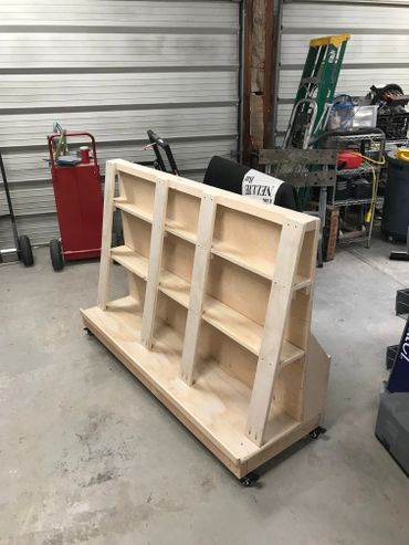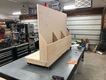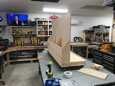 One of the first projects for Lazy iBuilds was this lumber cart. This is from many awesome You Tube videos including Steve Ramsey at Woodworking for Mere Mortals, Tamar at 3x3Custom and many others. My addition to the plan is a beveled edge on the ends of the sheet goods section to protect the cart and plywood scraps.
